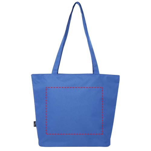 Gemaakt van waterafstotend 600D RPET, is de Panama GRS gerecycleerde zippered tote bag een perfecte multifunctionele tas voor evenementen, naar het strand of voor boodschappen. Het heeft een hoofdcompartiment met rits en een binnenzak met rits die groot genoeg is om je telefoon en andere waardevolle spullen in op te bergen. De handvatten zijn 34 cm lang, waardoor de tote bag gemakkelijk over de schouder te dragen is. Draagvermogen tot 10 kg. PVC-vrij.